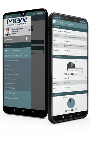 Aplicación móvil para el Administrador del Sistema MBA3. Consulta desde tu smartphone el estatus de tu servidor, espacio en disco, memoria y respaldos. Inactiva usuarios desde cualquier ubicación.
